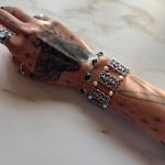 This bracelet is meant to fit securely around the wrist. Please refer to the size guide below if you need any assistance finding your exact measurements before selecting your size. For reference, the model is wearing a size S (6.5”).