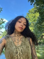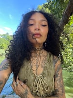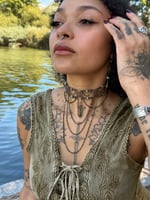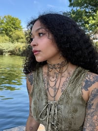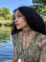 Artist's Note: This necklace is meant to fit securely around the neck, in the choker style. Please refer to the size guide below if you need any assistance finding your exact measurements before selecting your size above. For reference, the model is wearing a size XS (14”).